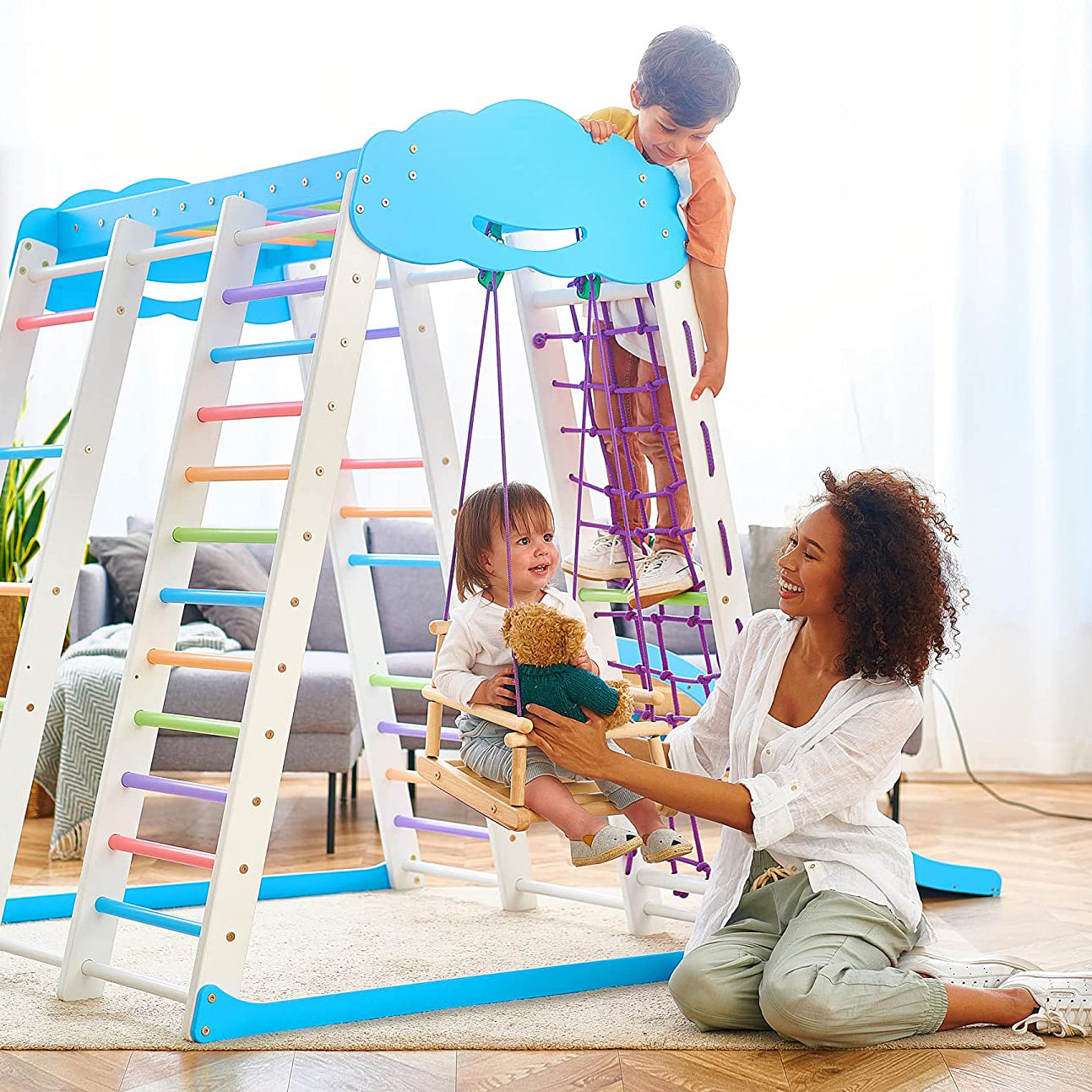 Indoor Klettergerüst (Spielplatz) mit rutsche für Kleinkind - Akvarelka Cloud