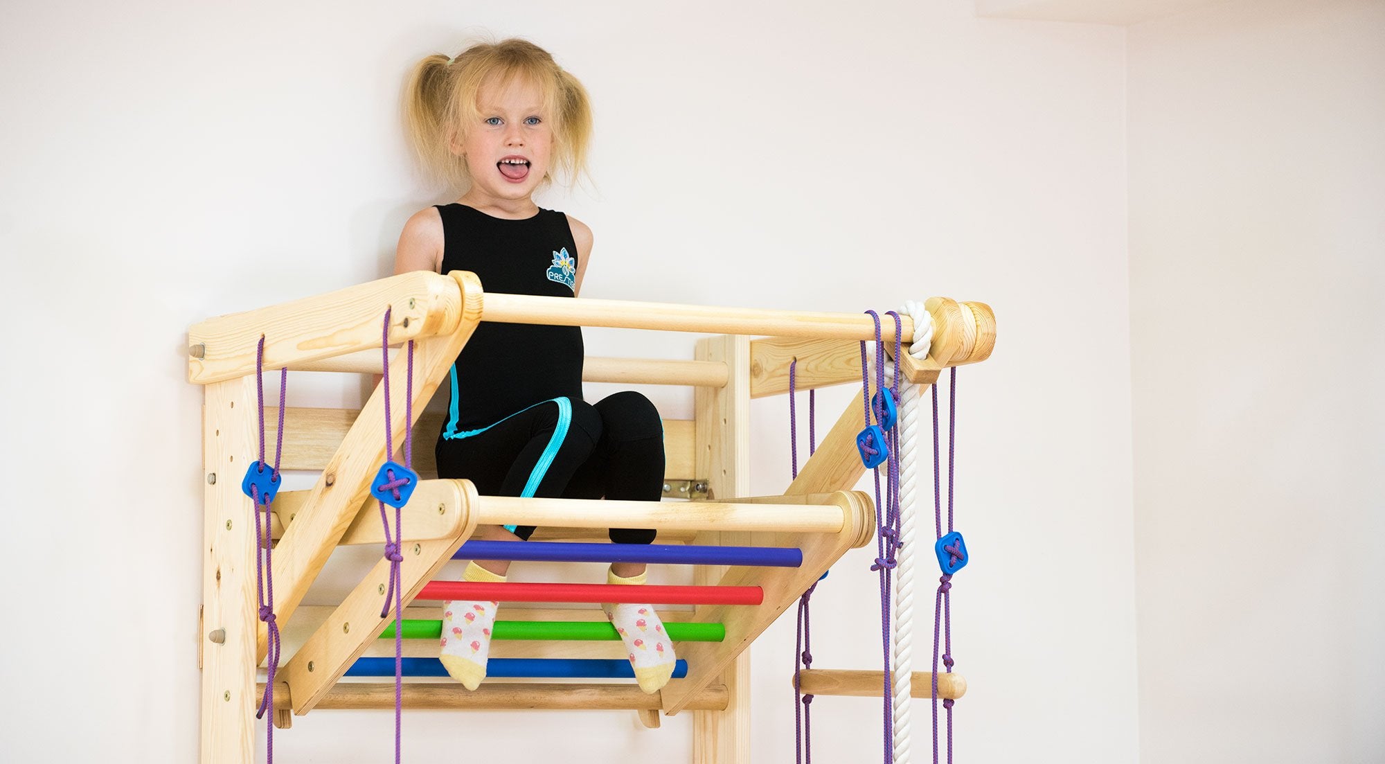 - The gym set dimensions 31.5”x7’2”, making it perfect for a play room, basement or an apartment